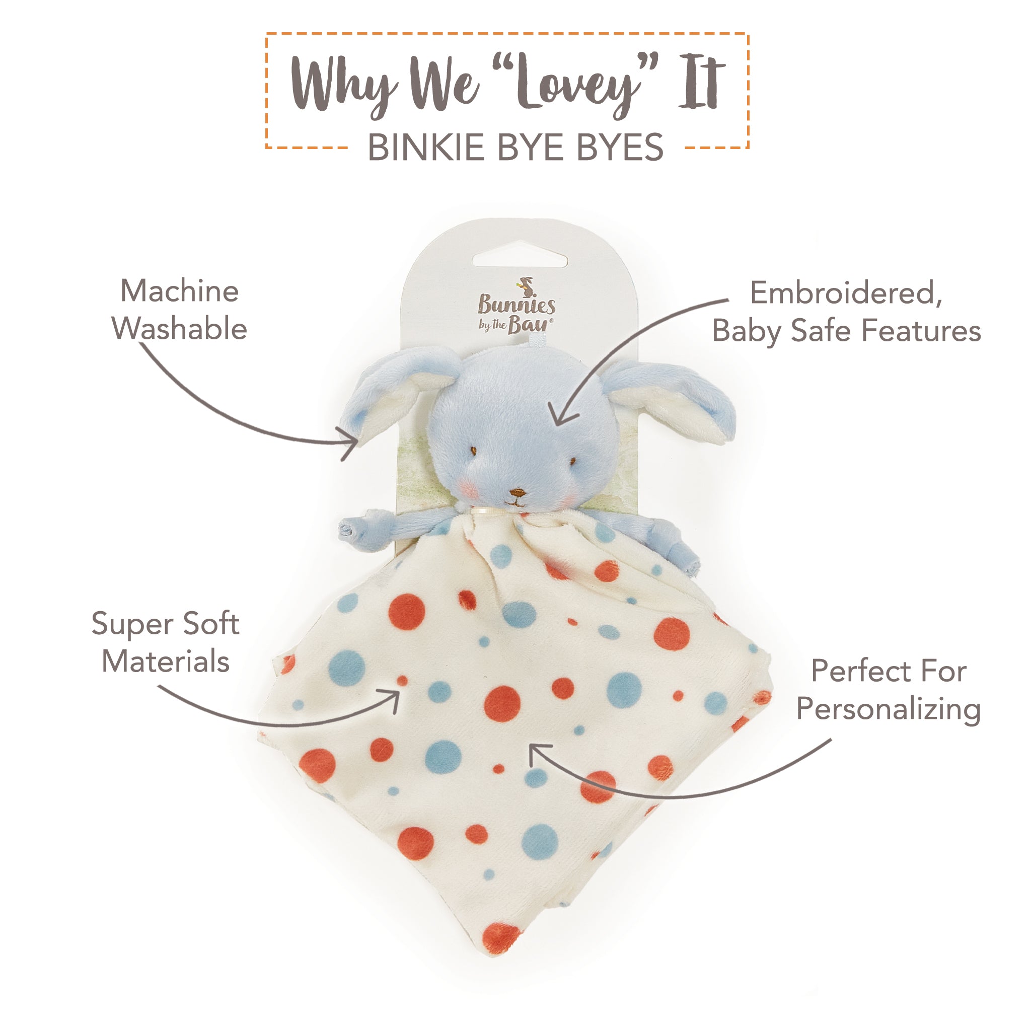 Skipit Binkie Bye Bye. the perfect cuddle companion for little ones on the go! With a plush puppy head. soft polka-dot blanket body. and sweet knotted arms. Skipit is designed for comfort and easy holding.